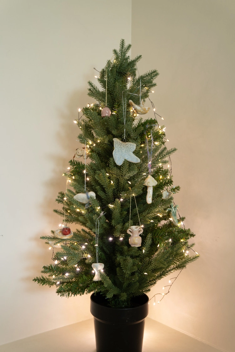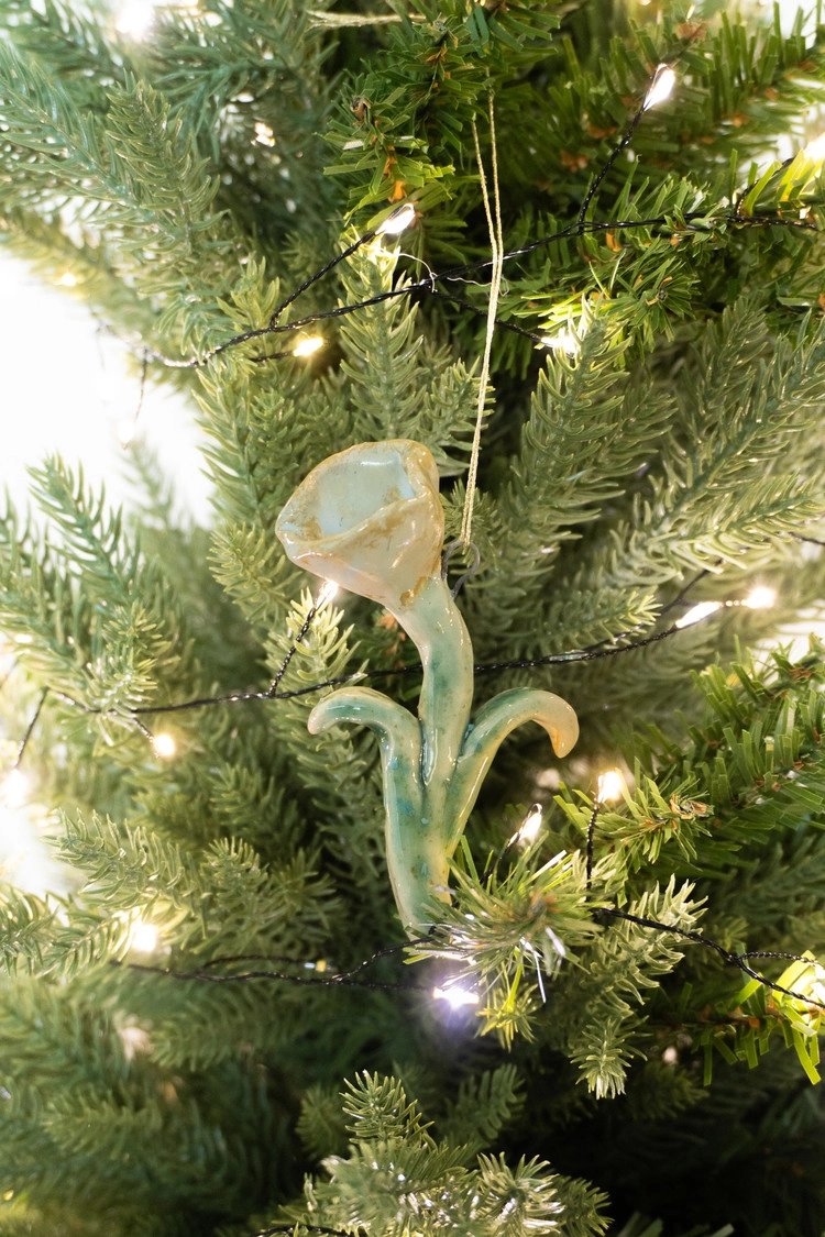 튤립 모양의 오너먼트. 손으로 러프하게 빚어냅니다.