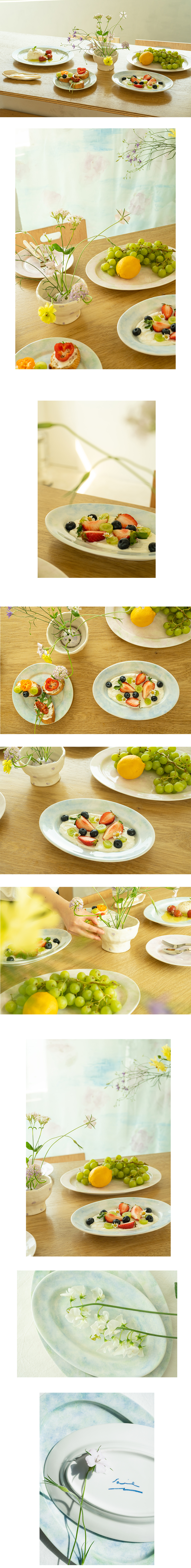 오벌 형태의 약간의 깊이감이 있는 플레이트. small plate와 oval dinner plate보다 높이감과 두께감이 더 있습니다.