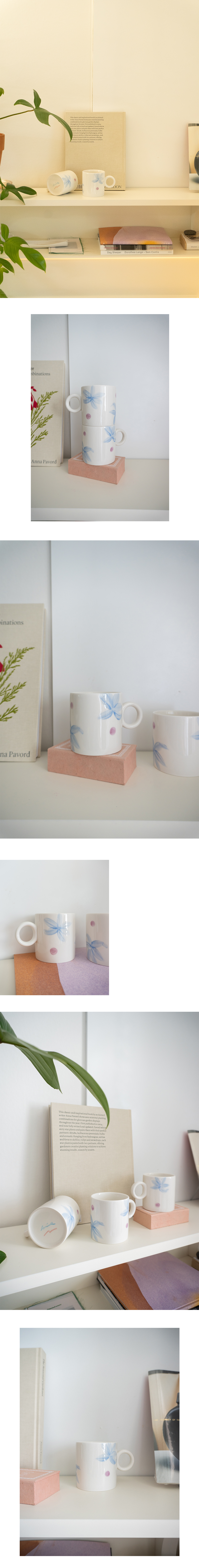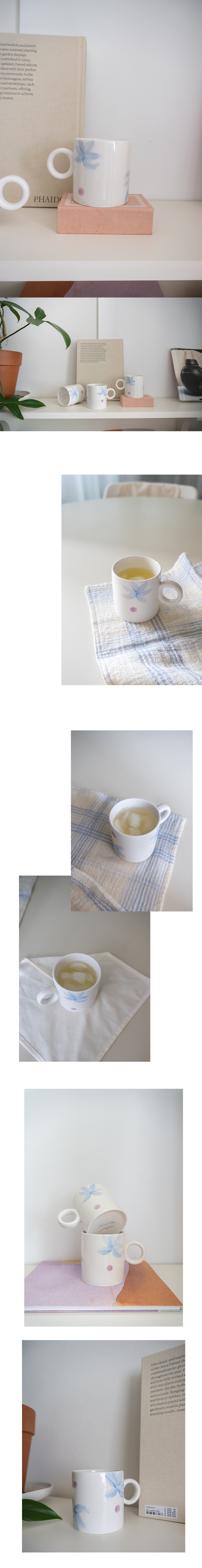 백합이 차분한 하늘빛으로 그려진 작은 사이즈의 머그.