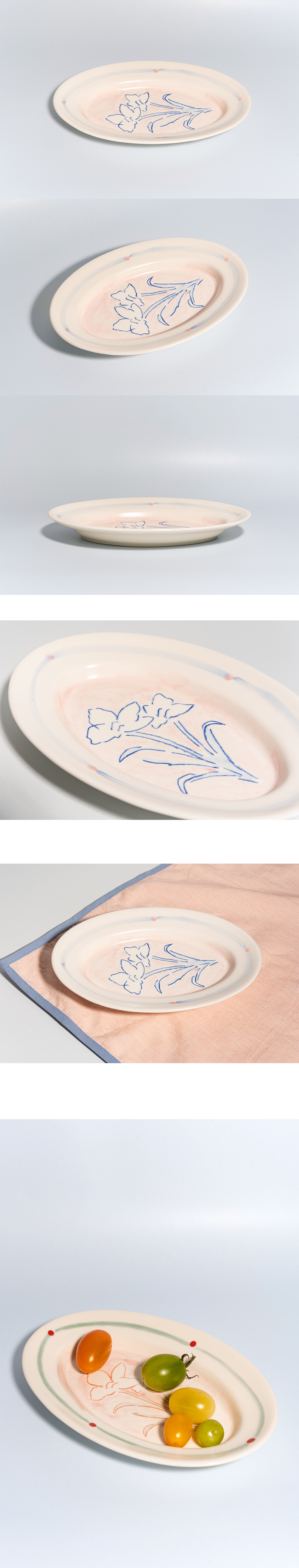 아마릴리스 꽃이 그려진 오벌 형태의 플레이트.